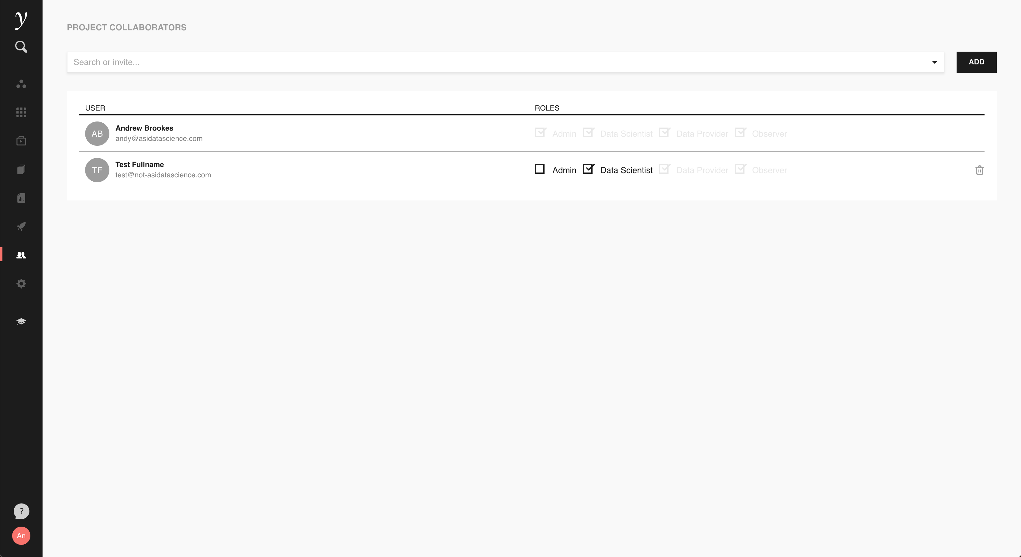 In order for a user to become an Admin or Data Scientist on any given project, they have to be given Full platform access by the Sysadmin. For further information on administering Faculty access, check out the Managing users doc.