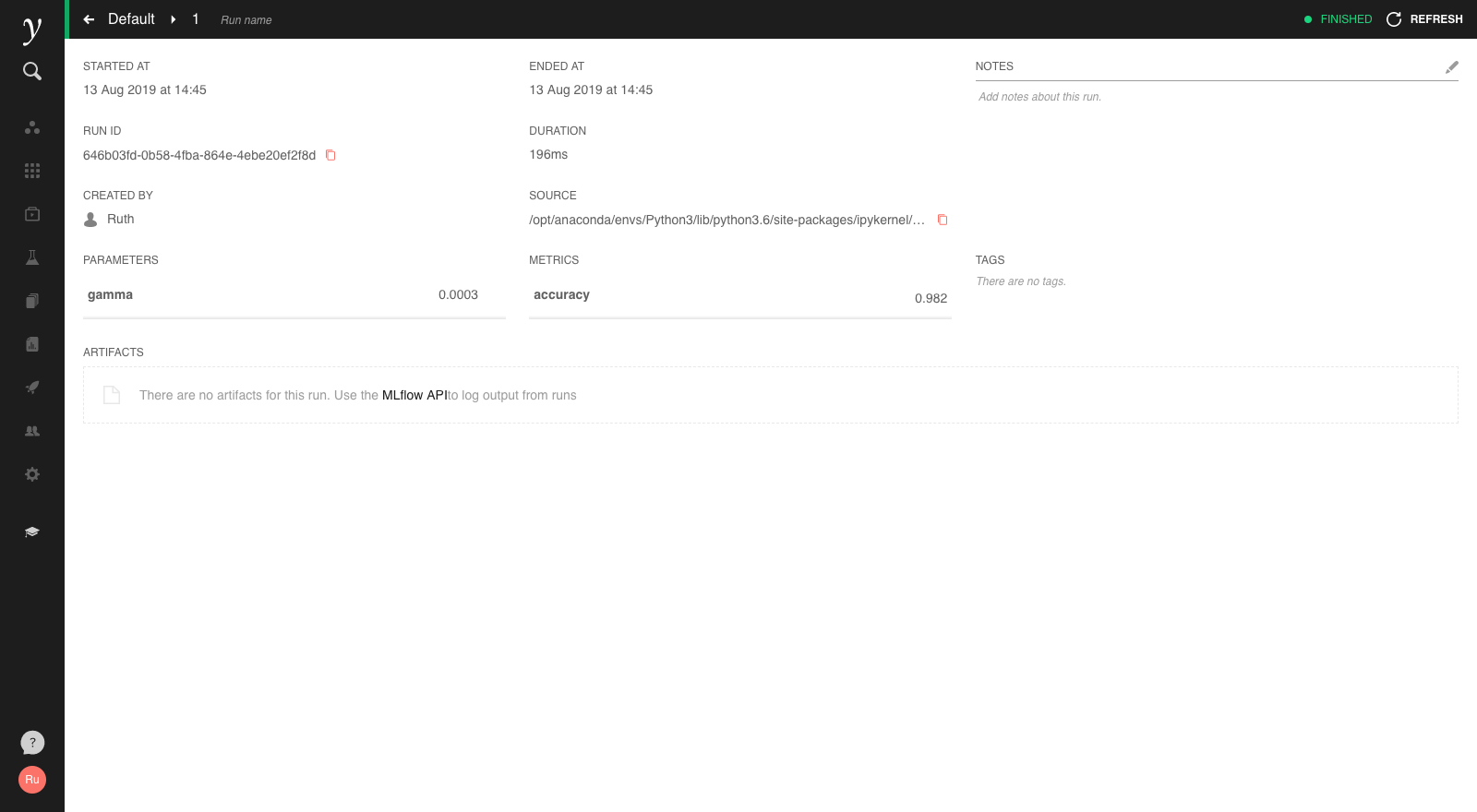mlflow.log_metric("accuracy", 0.98)