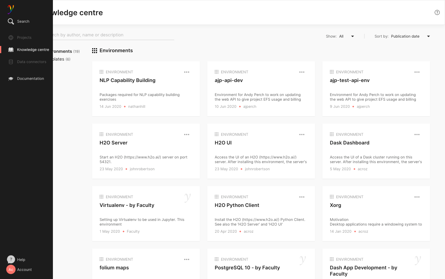 The Knowledge centre is a place for sharing environment definitions and project templates with other data scientists in your organisation.